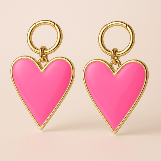 Heart of Glass Neon Pink and Gold Heart Earrings