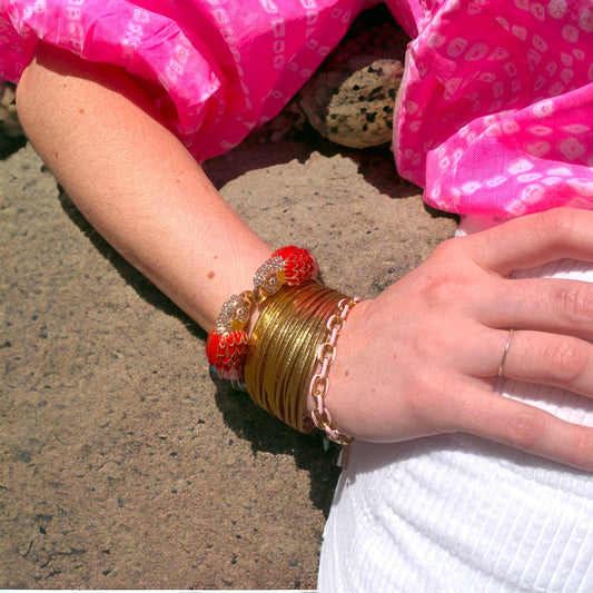 Discover wrist elegance with Orna Curio: explore our handpicked collection of bracelets, bangles, and cuffs—an artfully curated assortment crafted to accentuate your unique style. Each bracelet weaves a story, connecting with your personal journey. Beyond simple ornaments, our bracelets embody purpose, blending delicate sophistication with captivating charisma. Whether you prefer subtle simplicity or layered glamour, our carefully crafted range promises to add a touch of enchantment. Dive into our realm of refined luxury with exquisite bracelets, available in diverse styles and materials—perfect for those seeking timeless sophistication and meaningful adornment.