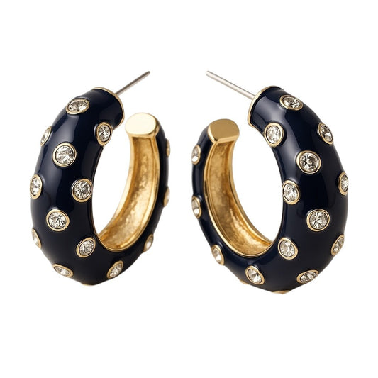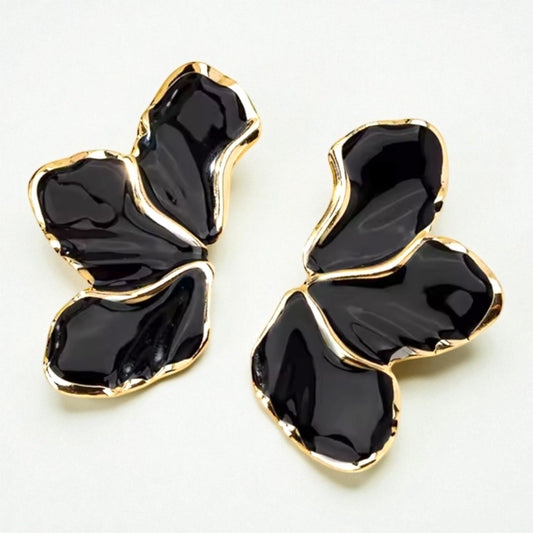 Flora Enamel Black and Gold Earrings