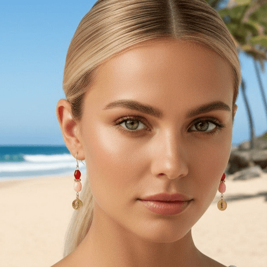 Heart of Glass Ruby Red and Gold Heart Earrings