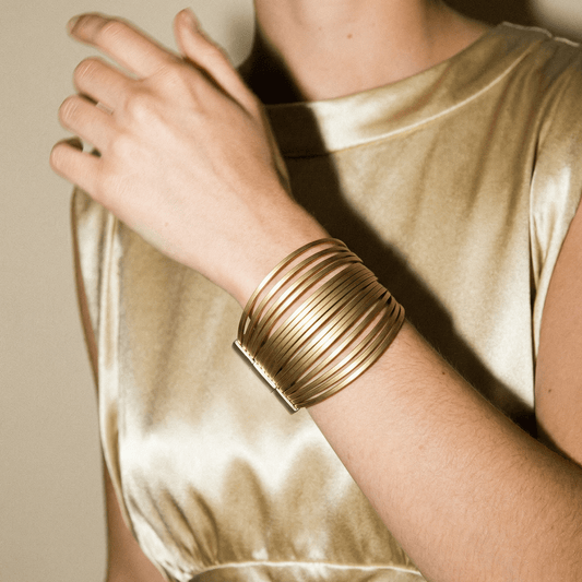 Rebel Rebel Gold Leather Cuff