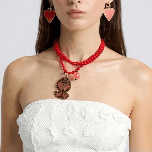 Angel Face Red and Pink Bespoke Vintage Necklace