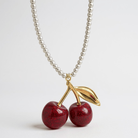 Vintage Bespoke Pearl and Cherry Statement Necklace