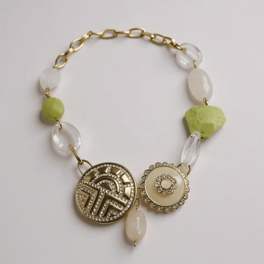 God Save the Queen Coin Gold Beaded Statement Necklace