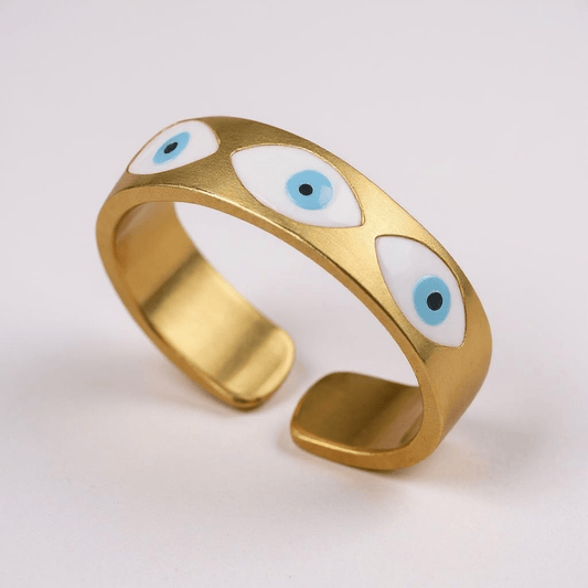 Evil Eye Turkish Enamel Gold Plated Adjustable Ring