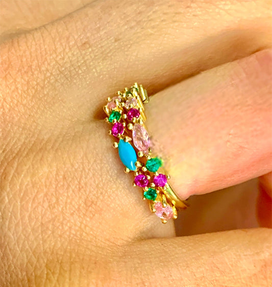 London Calling Aqua Ring 18k Gold Plated 925