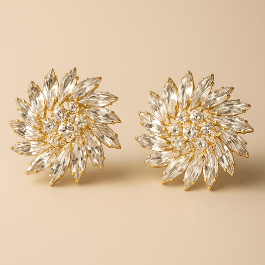 Show Stopper Rhinestone and Gold Clip On Earrings