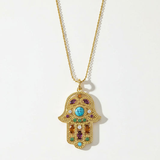 Hand of Fatima Gold Multi Tarot Necklace