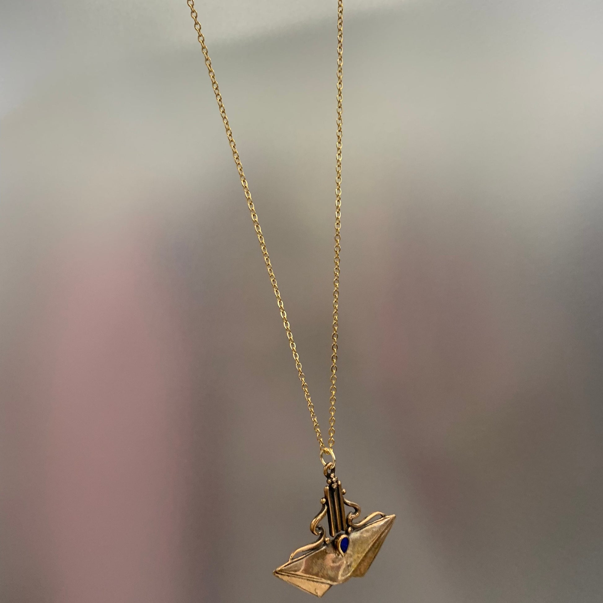 18k Gold Plated Stainless Steel Chain and Brass and Lapis Lazuli vintage pendant