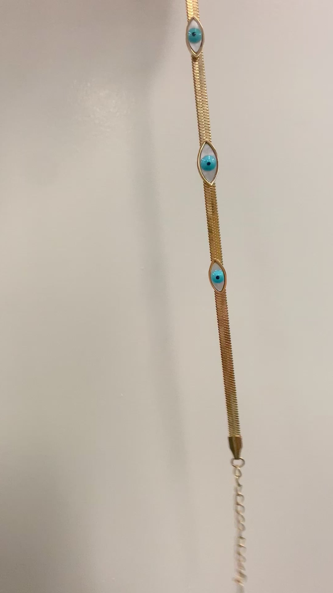 Elevate your style while embracing protection with the 18k Gold Plated Stainless Steel Evil Eye Bracelet. Its adjustable length and triple evil eye design make it a versatile and meaningful addition to your accessories. Enjoy the allure of its gold-plated stainless steel, making a memorable fashion statement that combines elegance and symbolism.